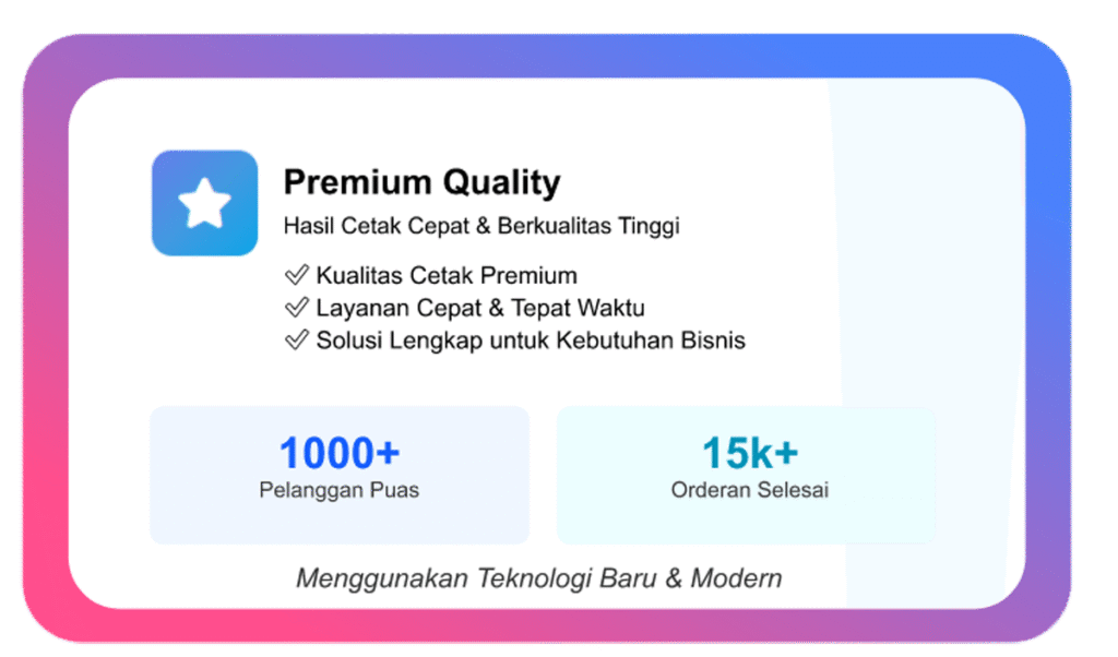 Kami menyediakan beragam produk cetak profesional mulai dari brochure, kemasan produk, hingga billboard skala besar. buat versi kamu untuk enterprint